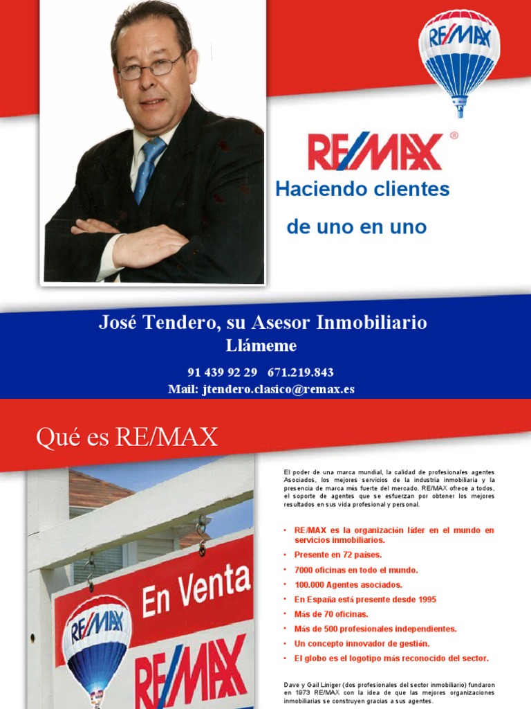 Conozca al N 1 en el Mundo REMAX es la organizacin lder en el mundo en servicios inmobiliarios Presente en 90 pases 7000 oficinas en todo el mundo 90000 Agentes Asociados En Espaa presente desde 1995 Ms de 70 oficinas Ms de. Es una seal de respeto hacia los dems adems es la oportunidad perfecta para agradar a tus clientes. Cuando realizas la compra-venta de un inmueble t mejor que nadie sabe la importancia que tiene ayudar a los clientes a encontrar una propiedad en la que se sientan como en casa.