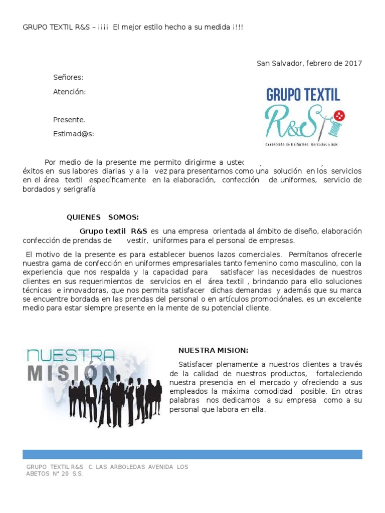 La idea de crear la empresa Sublimbord Sport se debe a la oportunidad de que existe una alta demanda en la ciudad de Santo Domingo por parte de las empresas pblicas privadas y. Modelo de carta de presentacin de sindicato 1. El contenido de la carta de presentacin debe contestar las.