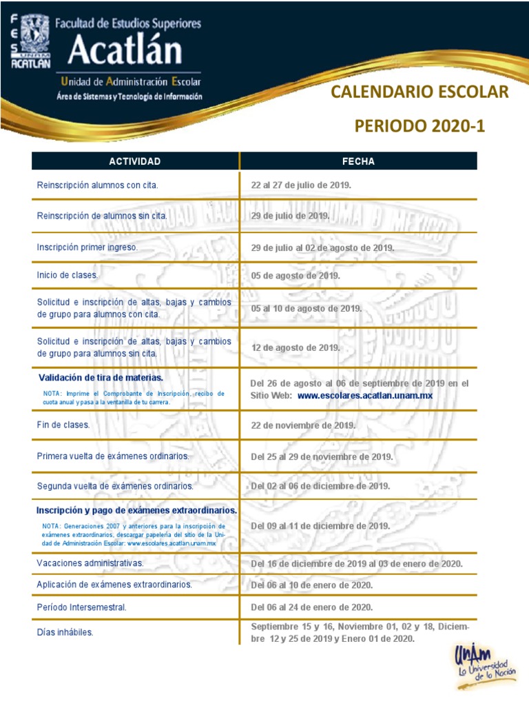 Talleres Culturales FES Acatln was live. Si la institucin en donde vas a realizar tu servicio social te pide una carta de presentacin para aceptarte en sus programas llena el formato de alumno o el formato de egresado segn sea el caso y luego acude al rea de. Unidad de administracin escolar fes acatln.