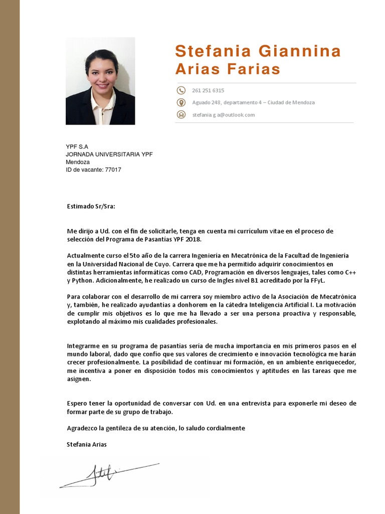 Carta de presentacion ypf. Puebla de z a 26 de noviembre de 2014 a quien corresponda. chale un ojo a nuestros currculums para empresas y crea el. Fernndez Me gustara integrarme en el Departamento Financiero de su empresa ya que me siento motivado y capacitado para desarrollar diferentes tareas especialmente en las reas de finanzas y contabilidad.